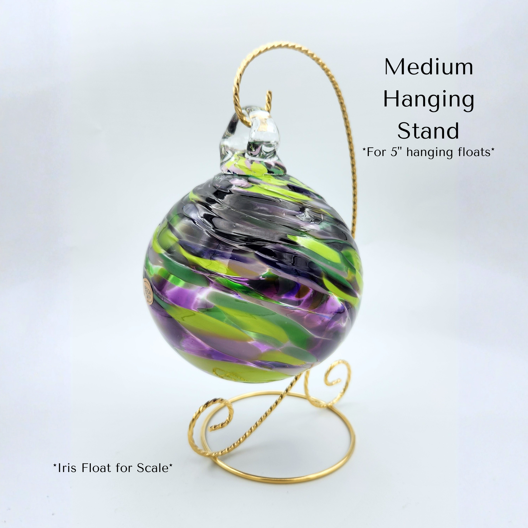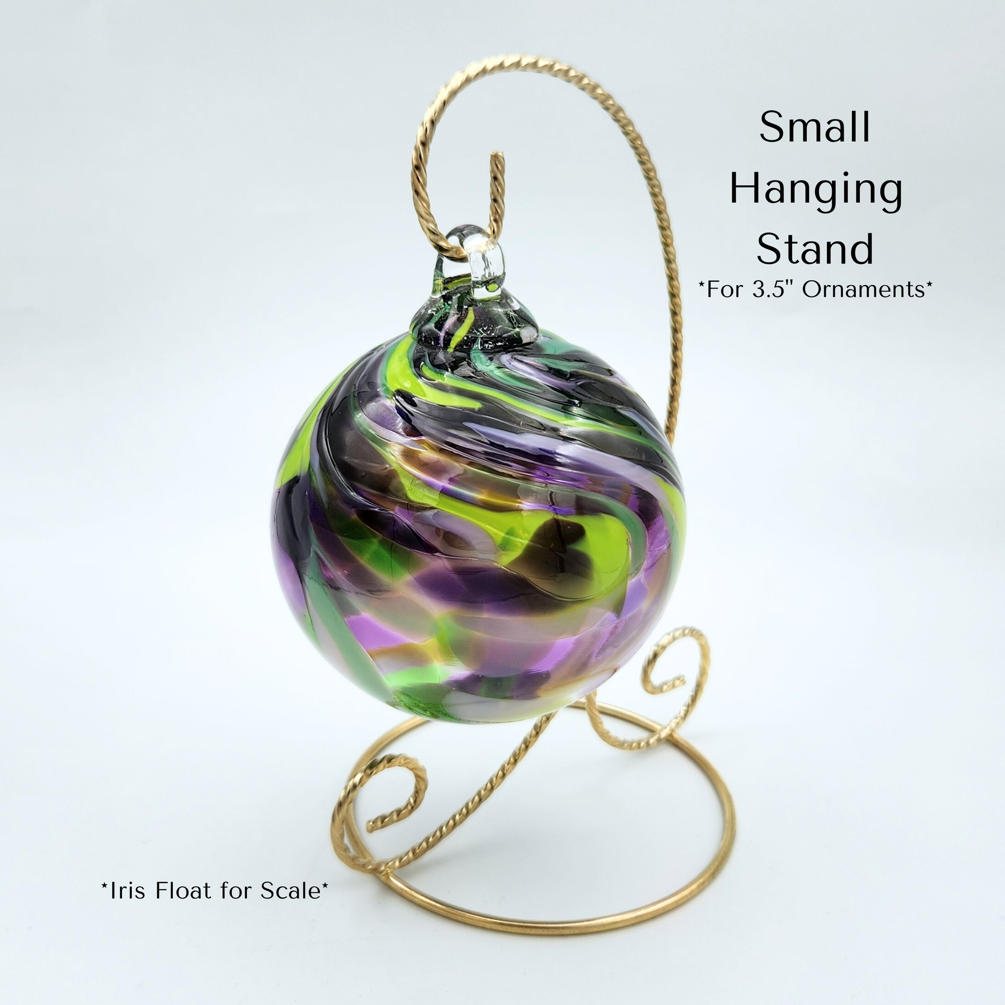 Display your favorite glass ornaments or floats beautifully with our Gold or Silver Hanging Ornament Stand — available in small, medium, and large sizes. Crafted from durable metal with a warm golden finish, each stand provides a simple, elegant way to showcase handmade glass art year-round.