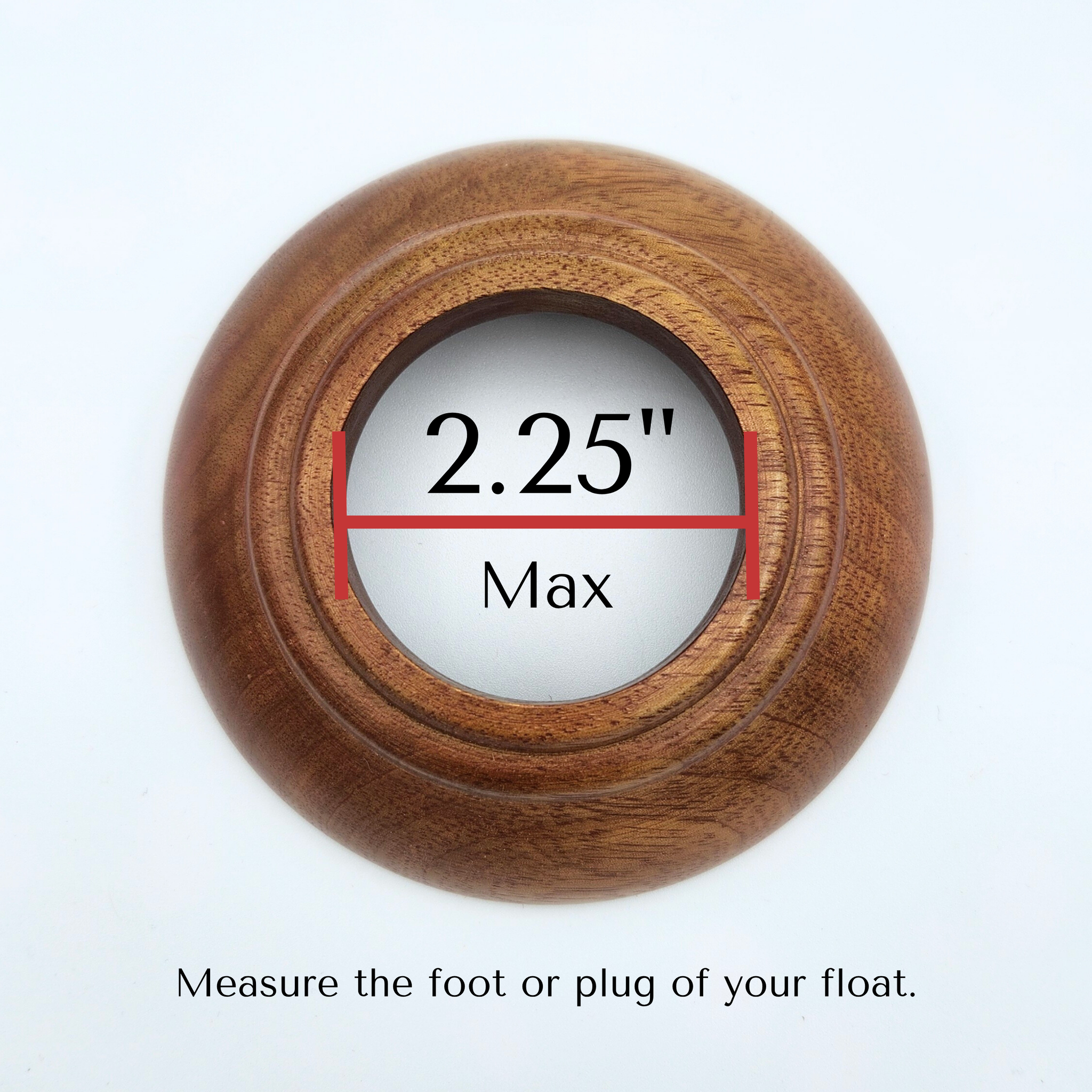 2.25" round opening – fits floats with small foot or plug. We recommend measuring yours.